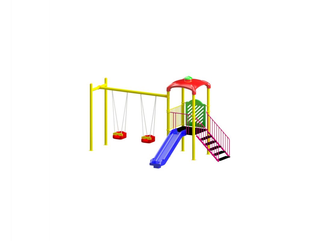 Playground all’insegna della semplicità. Playground con torretta, scivolo e altalena dai colori accesi, Bello da vedere, sicuro, divertente. Potrete sostare sulla torretta prima di scendere. L’altezza della scivolata relativamente bassa lo rende sicuro, senza rinunciare mai al divertimento.