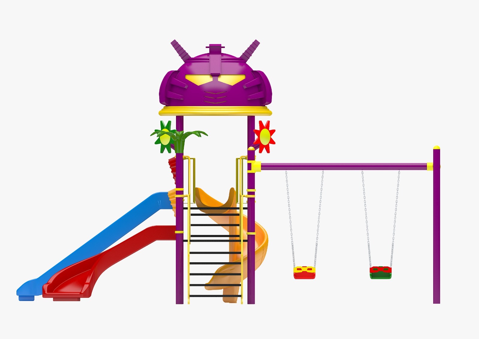 Il Playground da esterno play robot misura 7mt x 7,5mt x 4,2mt h.
