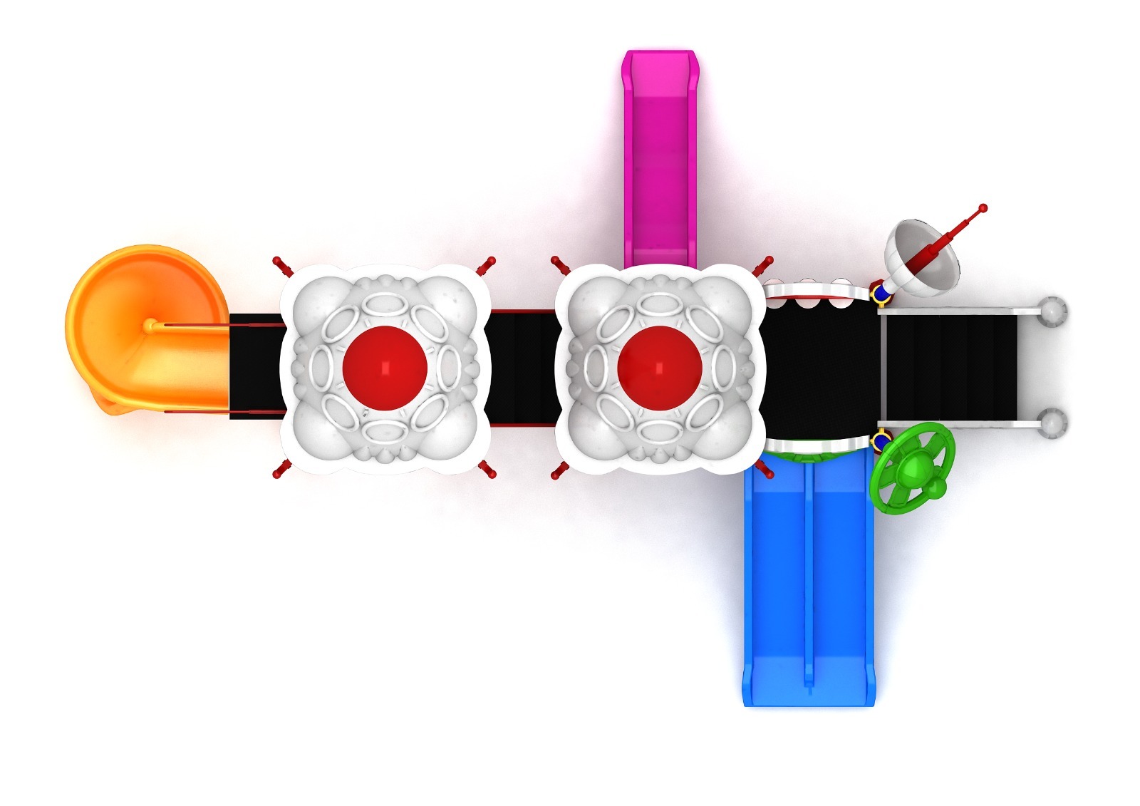Il Playground Shuttle Fun misura 8,5 m x 8 m x 4,77mt h